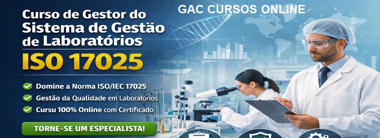curso ISO 17025, gestor de laboratório, gestão de laboratórios, ISO 17025 online, sistema de gestão laboratorial, auditor ISO 17025, qualidade em laboratórios, curso laboratório EAD, formação gestor laboratório